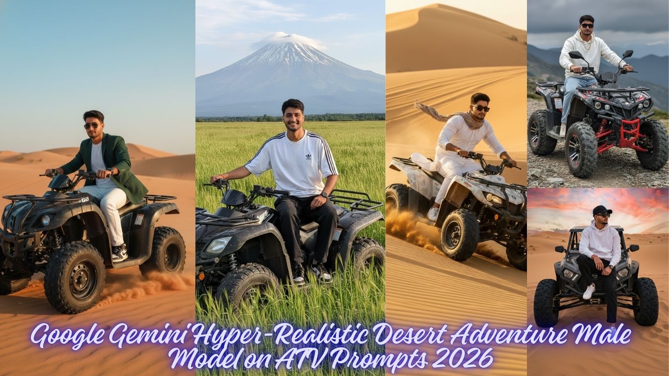 Google Gemini Hyper-Realistic Desert Adventure Male Model on ATV Prompts 2026