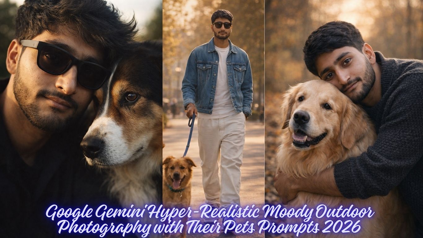 Google Gemini Hyper-Realistic Moody Outdoor Photography with Their Pets Prompts 2026