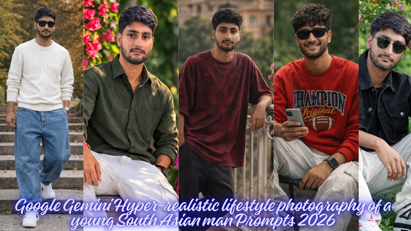 Google Gemini Hyper-realistic lifestyle photography of a young South Asian man Prompts 2026