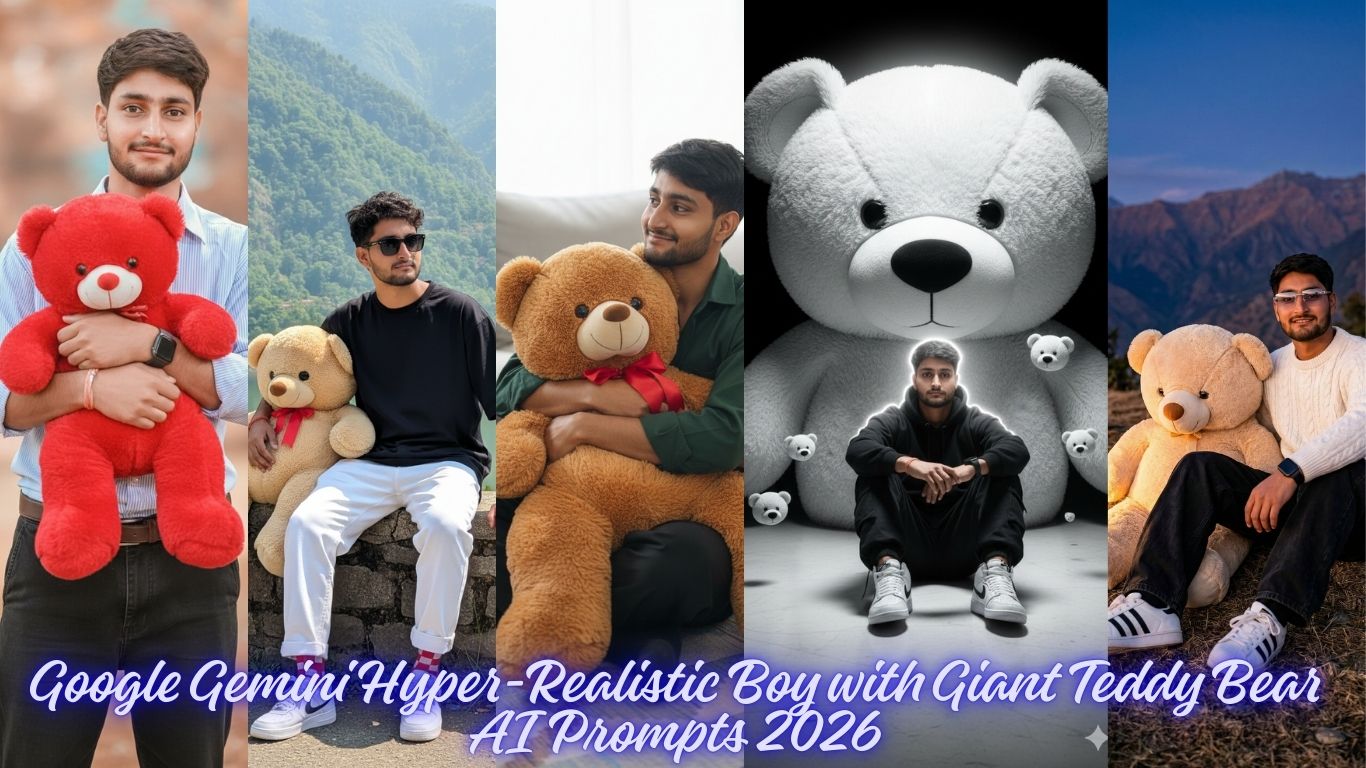 Google Gemini Hyper-Realistic Boy with Giant Teddy Bear AI Prompts 2026