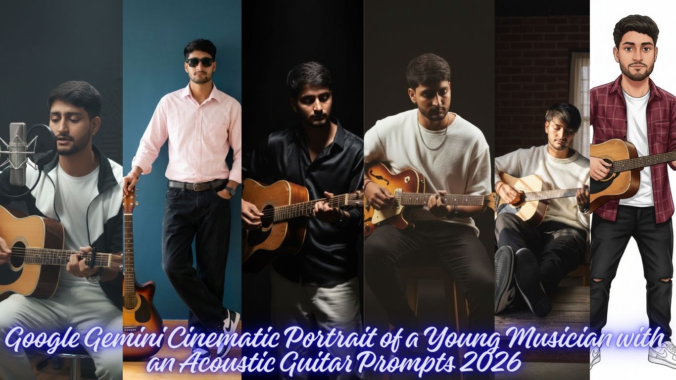 Google Gemini Cinematic Portrait of a Young Musician with an Acoustic Guitar Prompts 2026